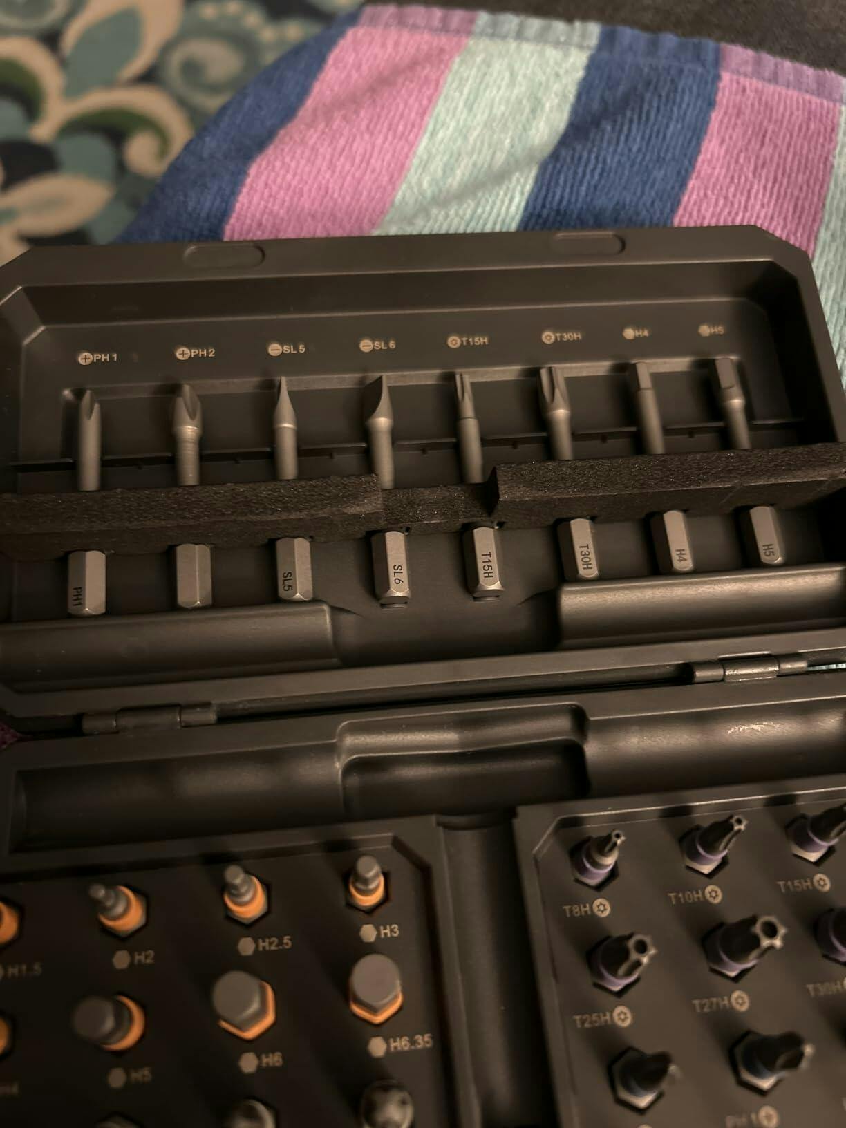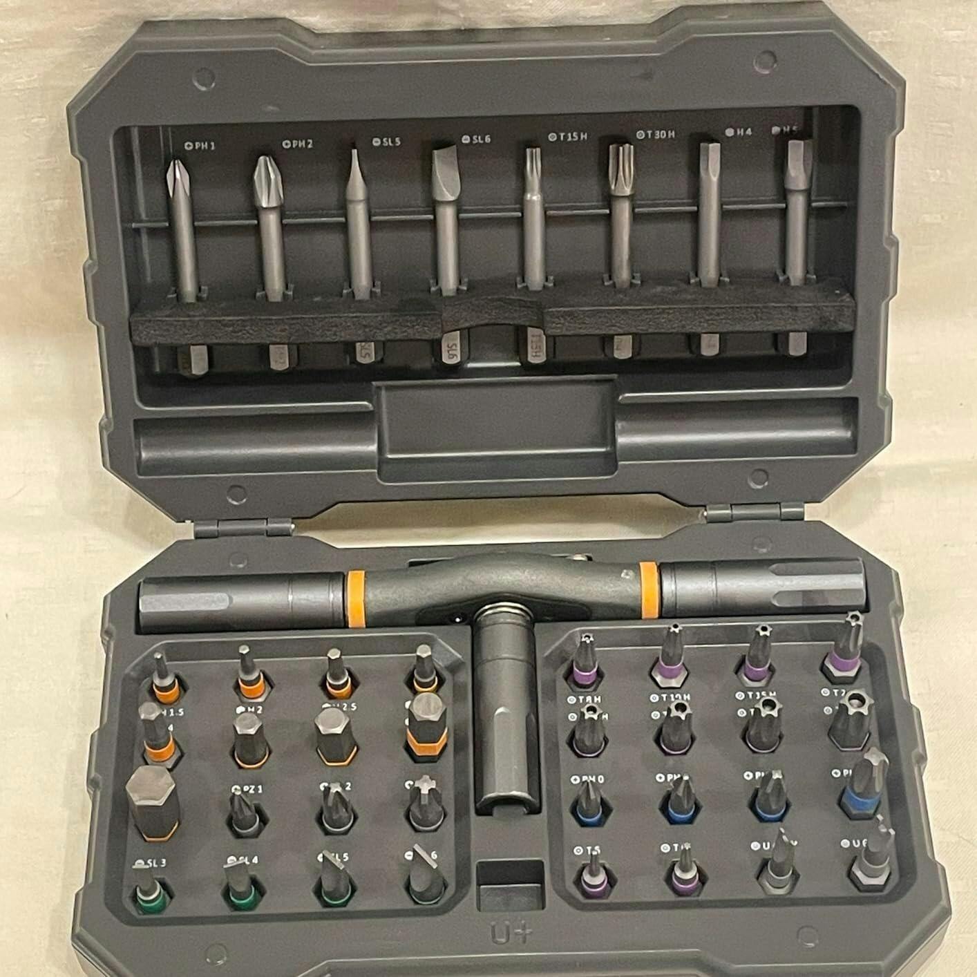 The screwdriver set comes in a sturdy, organized storage box that keeps every bit securely in place.