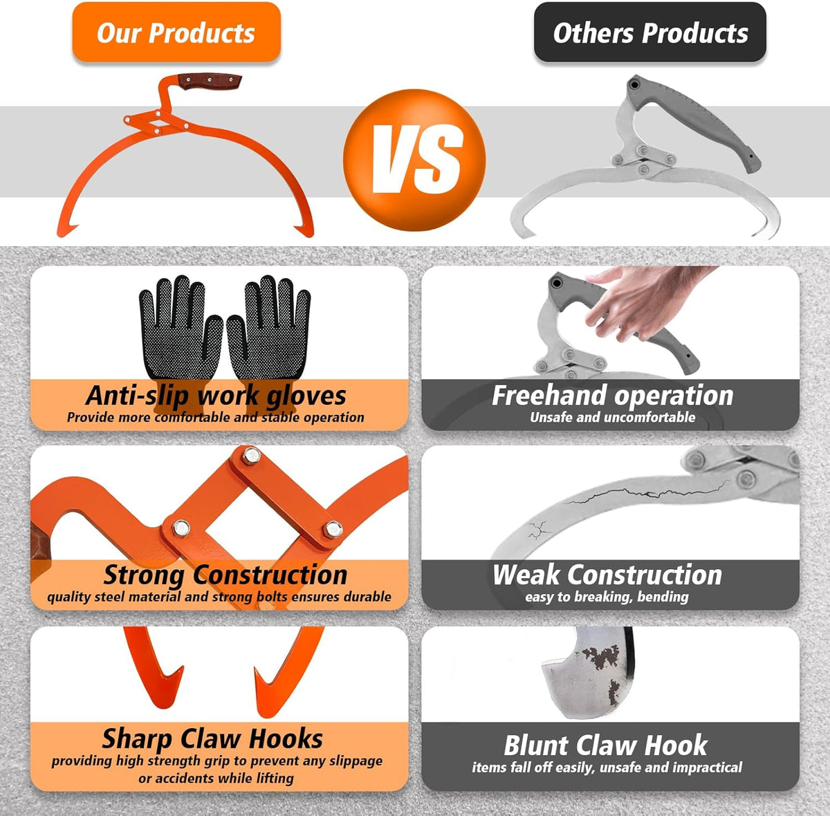 Grip Stronger. Work Smarter. — Next-Gen Log Lifting Tool. It’s more than a tool — it’s like having an extra pair of iron hands. Save 30% effort, work safer, and finish faster.