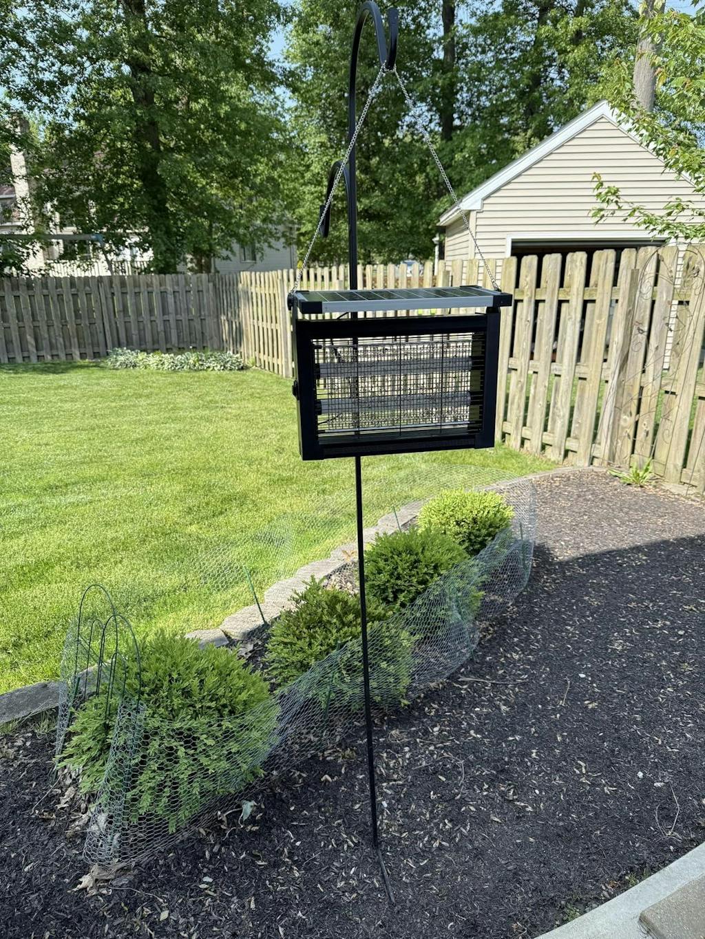 Upgraded Solar Bug Zapper: This advanced solar-powered bug zapper, uses a special light wavelength to lure and eliminate pests with a 3000V grid. Safer and more eco-friendly, it comes with a safety net to protect kids and pets from shocks. This powerful device can keep an area of 646 square feet free from flies, mosquitoes, wasps, moths, and other flying insects.
